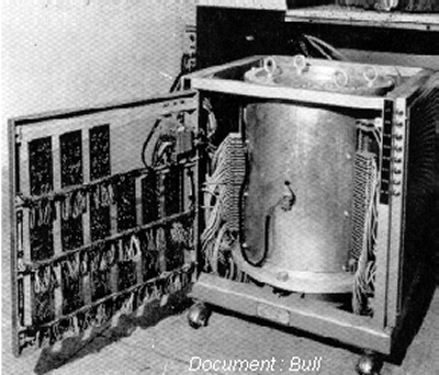 A cette époque, le principal support de saisie des informations était la carte perforée, qui servait aussi de ce que l'on qualifierait aujourd'hui de mémoire de masse, comme nos disques durs.